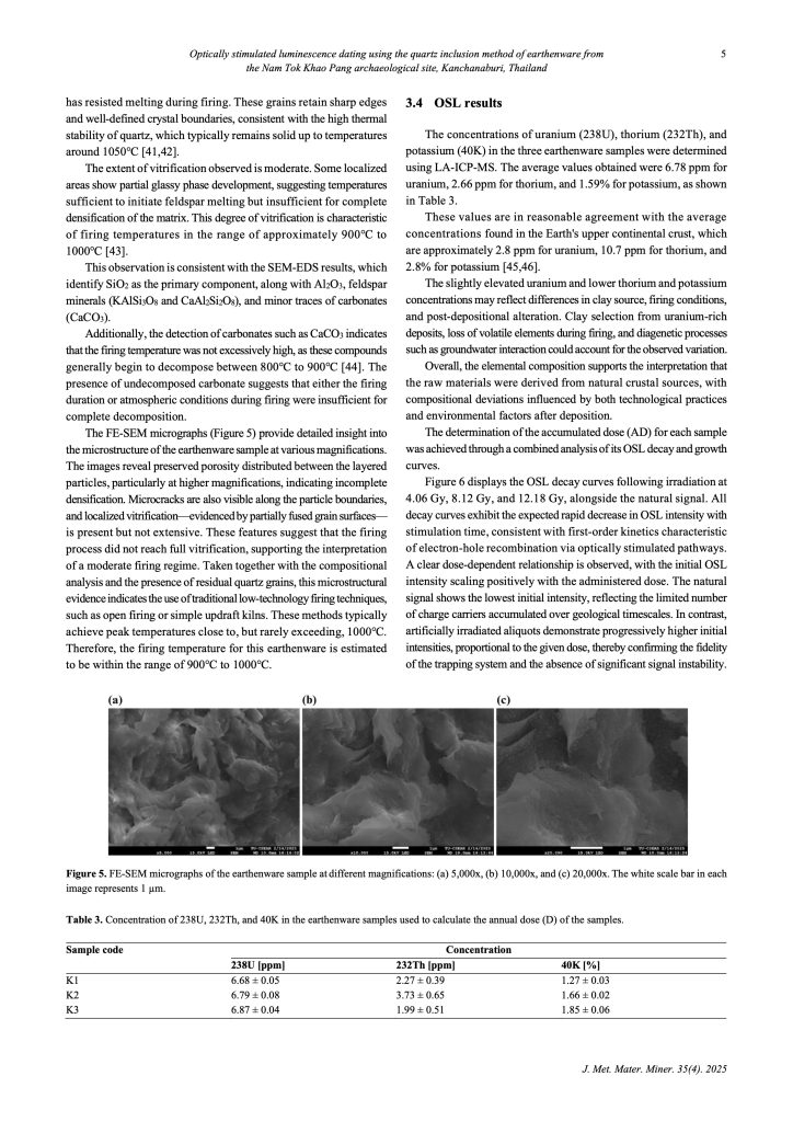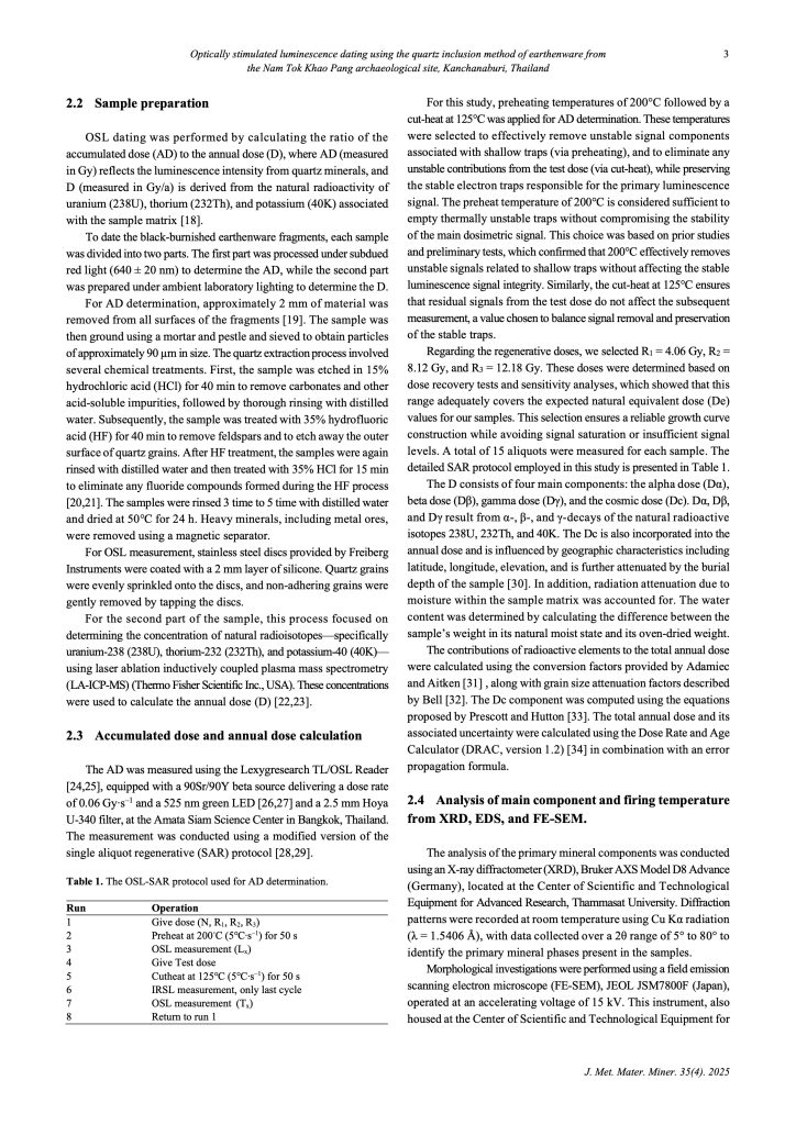 Optically stimulated luminescence dating using the quartz inclusion method of earthenware